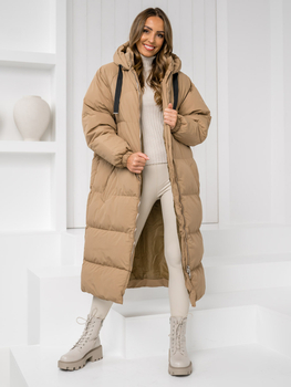 Дамско зимно дълго капитонирано палто с качулка камел Bolf 5M3189A