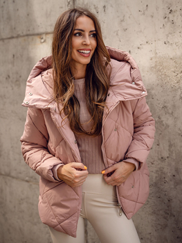Светлорозово капитонирано зимно дамско яке с качулка Bolf B9570