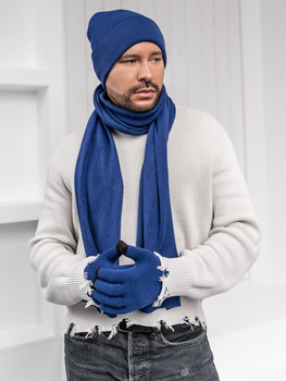 Кобалтово син мъжки зимен комплект - шапка, шал, ръкавици Bolf 2025007