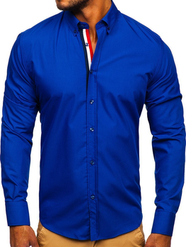 Кобалтово синя елегантна мъжка риза с дълъг ръкав Bolf 1703