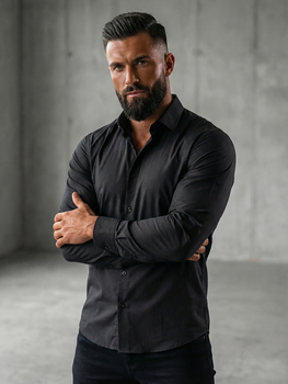 Мъжка елегантна риза с дълъг ръкав черна Bolf 0939