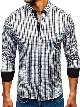 Тъмносиня мъжка карирана риза с дълъг ръкав Bolf 22747
