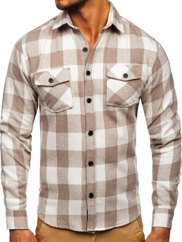 Бежева мъжка елегантна бархетна риза с дълъг ръкав Bolf 20723