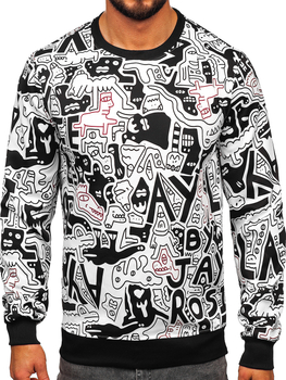 Черно-бял мъжки суитшърт без качулка, с принт Bolf 8B1133
