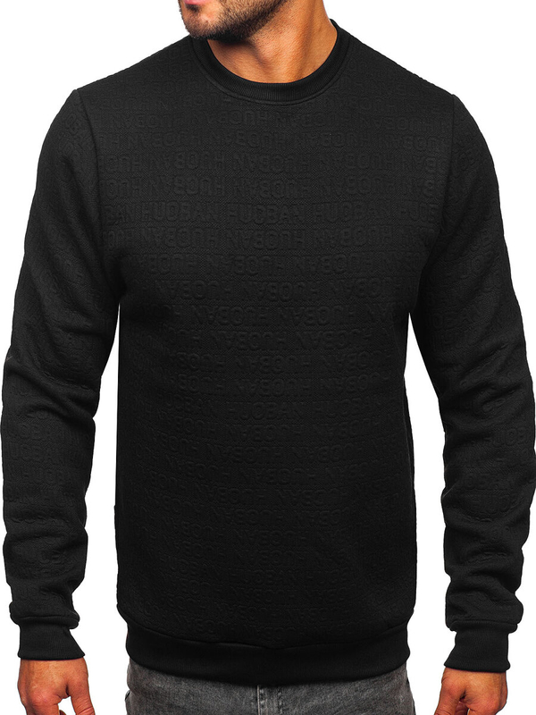 Черен мъжки суитшърт без качулка с принт Bolf 8744