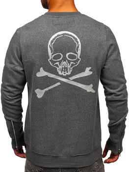 Графитен мъжки суитшърт без качулка и с принт Bolf MF2014