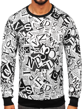 Чернo-бял мъжки суитшърт без качулка с принт Bolf 8B1137