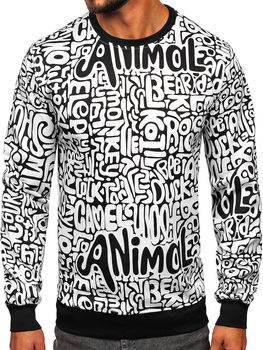 Бял мъжки суитшърт без качулка с принт Bolf 8B1111