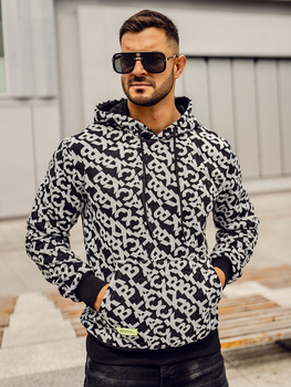 Черно-сив с принт мъжки суитшърт с качулка Bolf HW2320