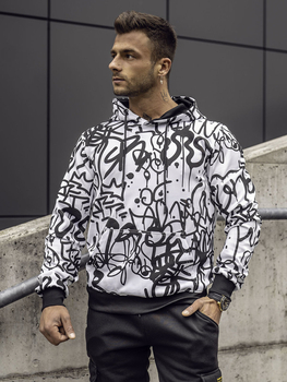 Бял с принт мъжки суитшърт с качулка Bolf HM258