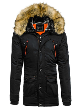 Черно дълго мъжко зимно яке с качулка Bolf 5M3121