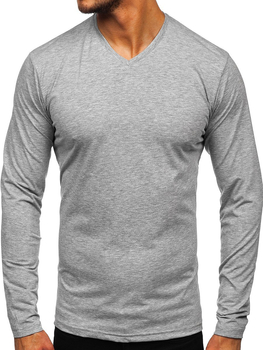 Мъжка тениска с дълъг ръкав без принт сива Bolf 1209