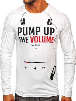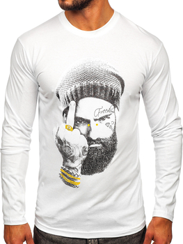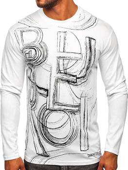 Мъжка тениска с дълъг ръкав с принт бяла Bolf 1214