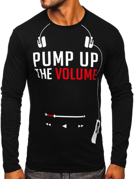 Мъжка тениска с дълъг ръкав с принт черна Bolf 1219