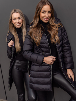 Черно дамско дълго капитонирано зимно яке с качулка Bolf 11Z8083B