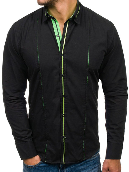 Отзиви и мнения на потребители за Мъжка елегантна риза с дълъг ръкав черно-зелена Bolf 2964