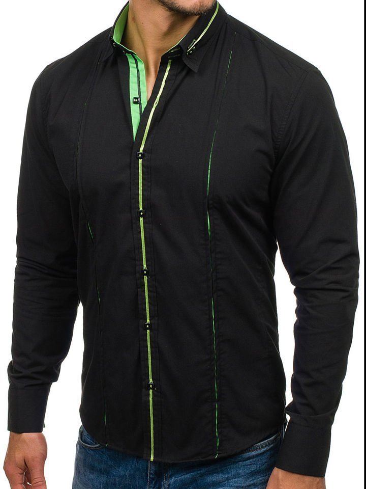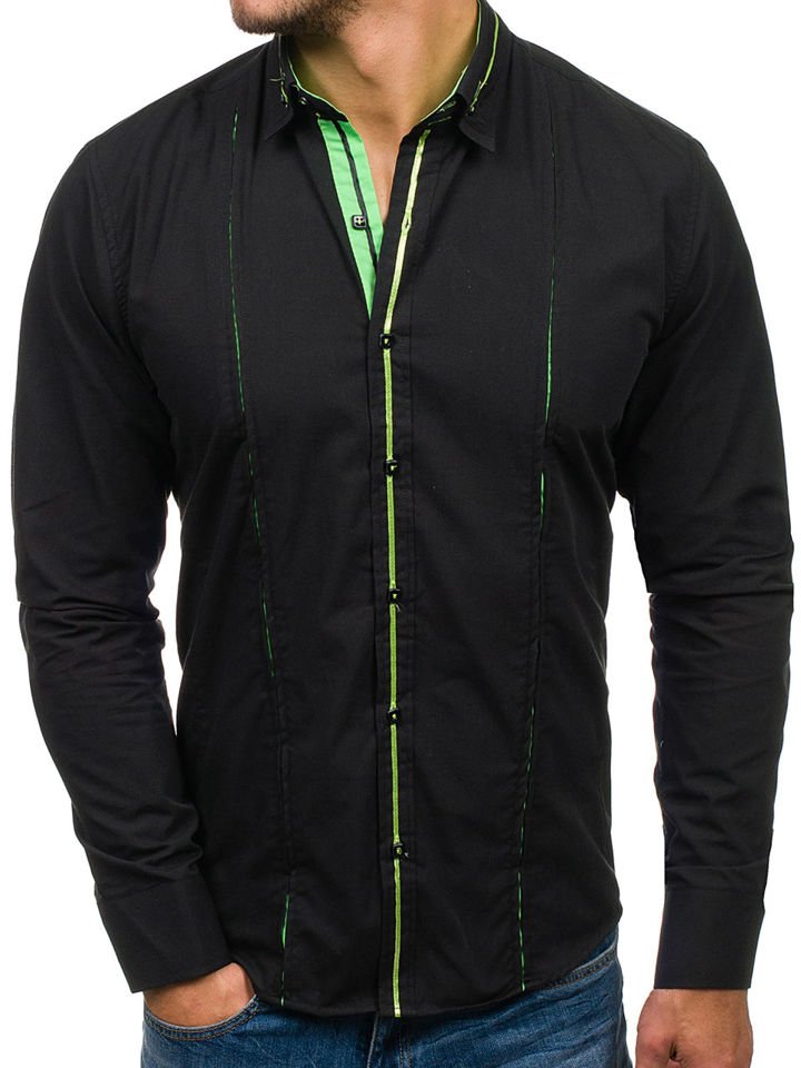 Мъжка елегантна риза с дълъг ръкав черно-зелена Bolf 2964