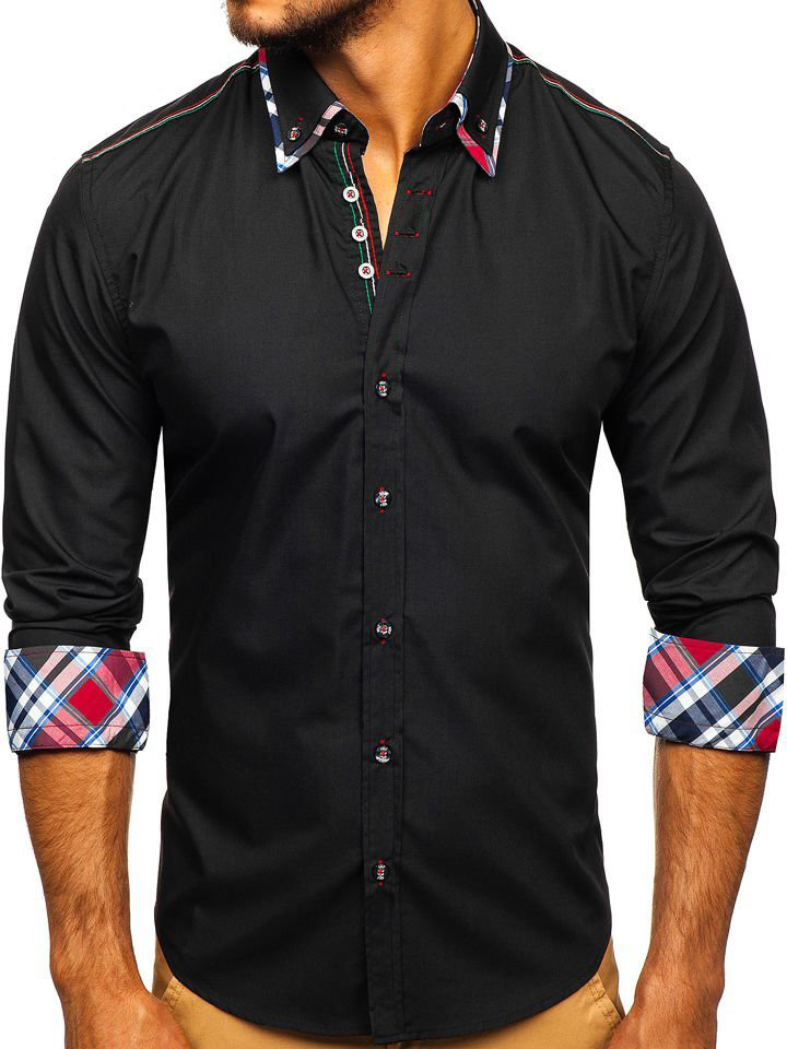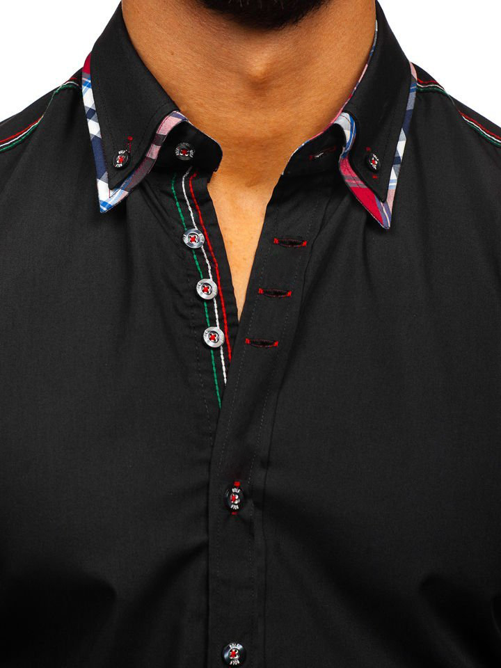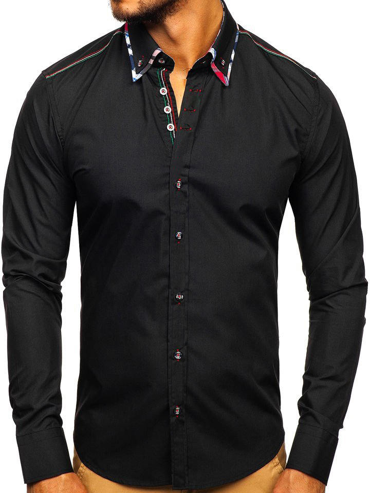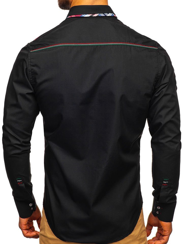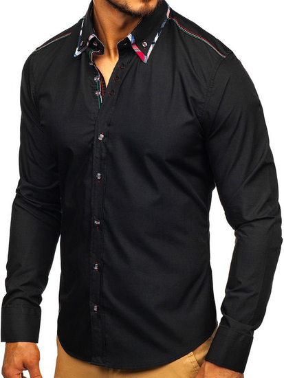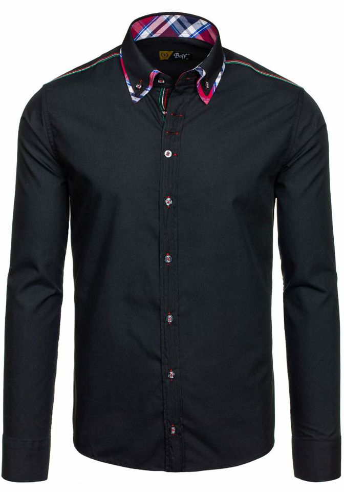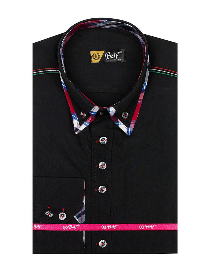 Мъжка елегантна риза с дълъг ръкав черна Bolf 3701