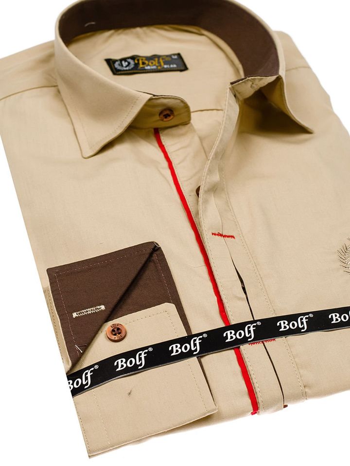 Отзиви и мнения на потребители за Мъжка елегантна риза с дълъг ръкав цвят камел Bolf 1769