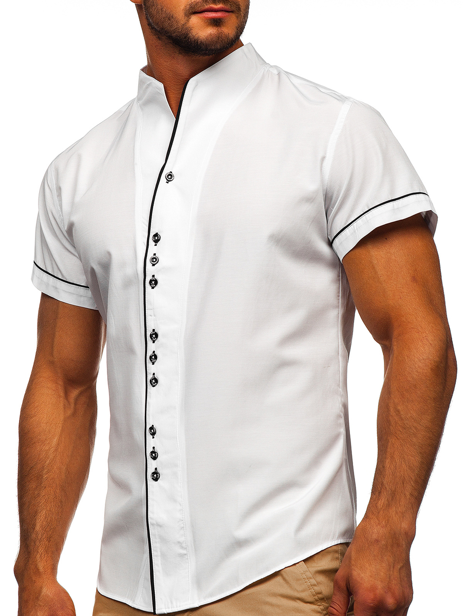 Мъжка риза с къс ръкав бяла Bolf 5518