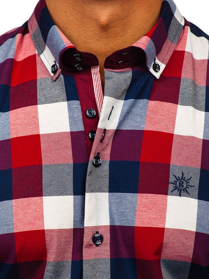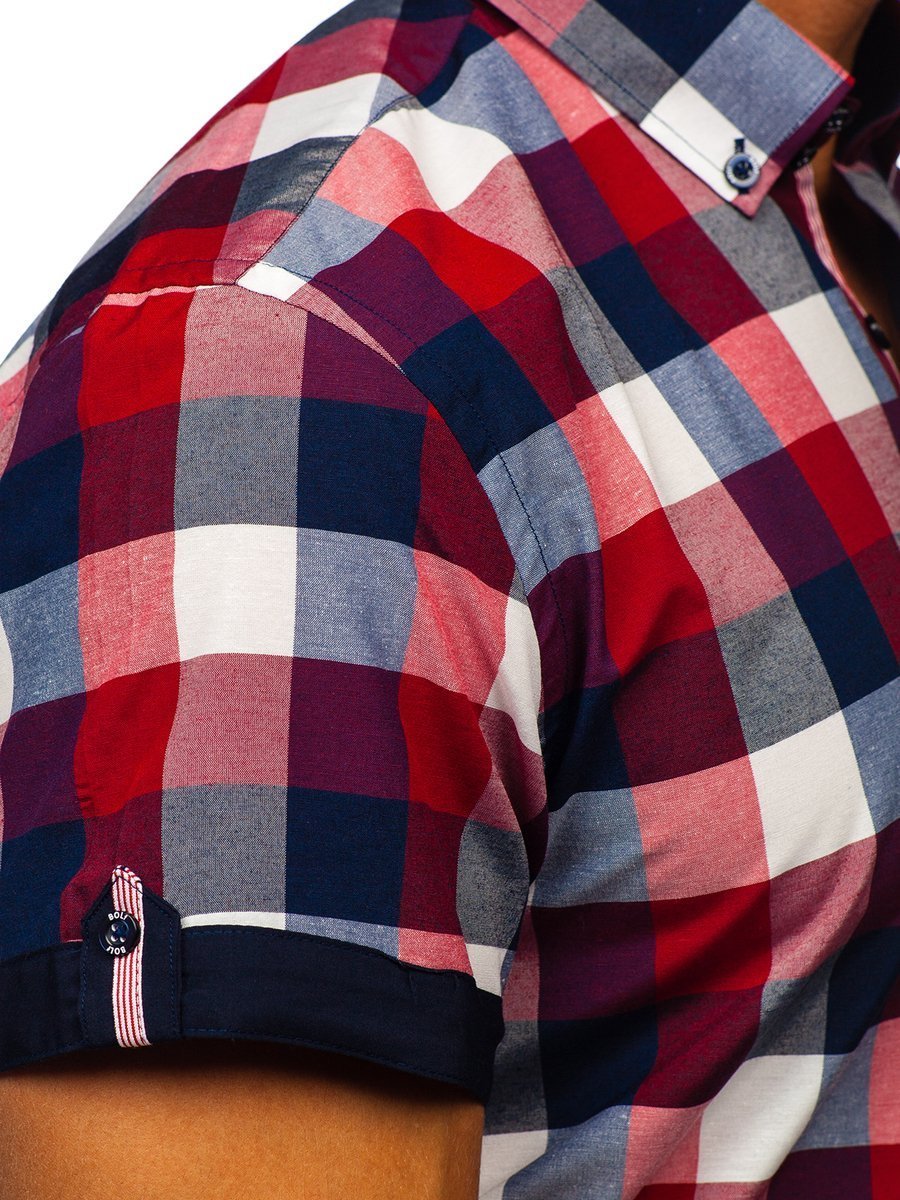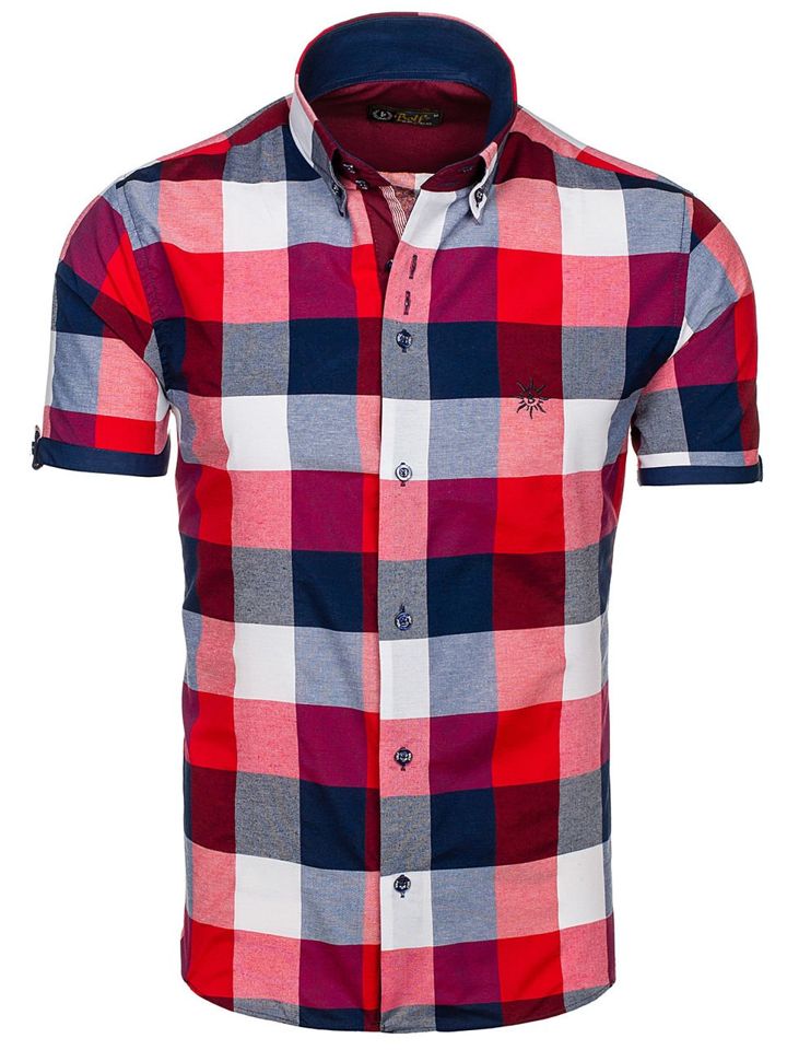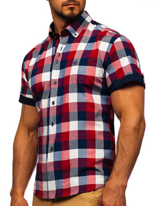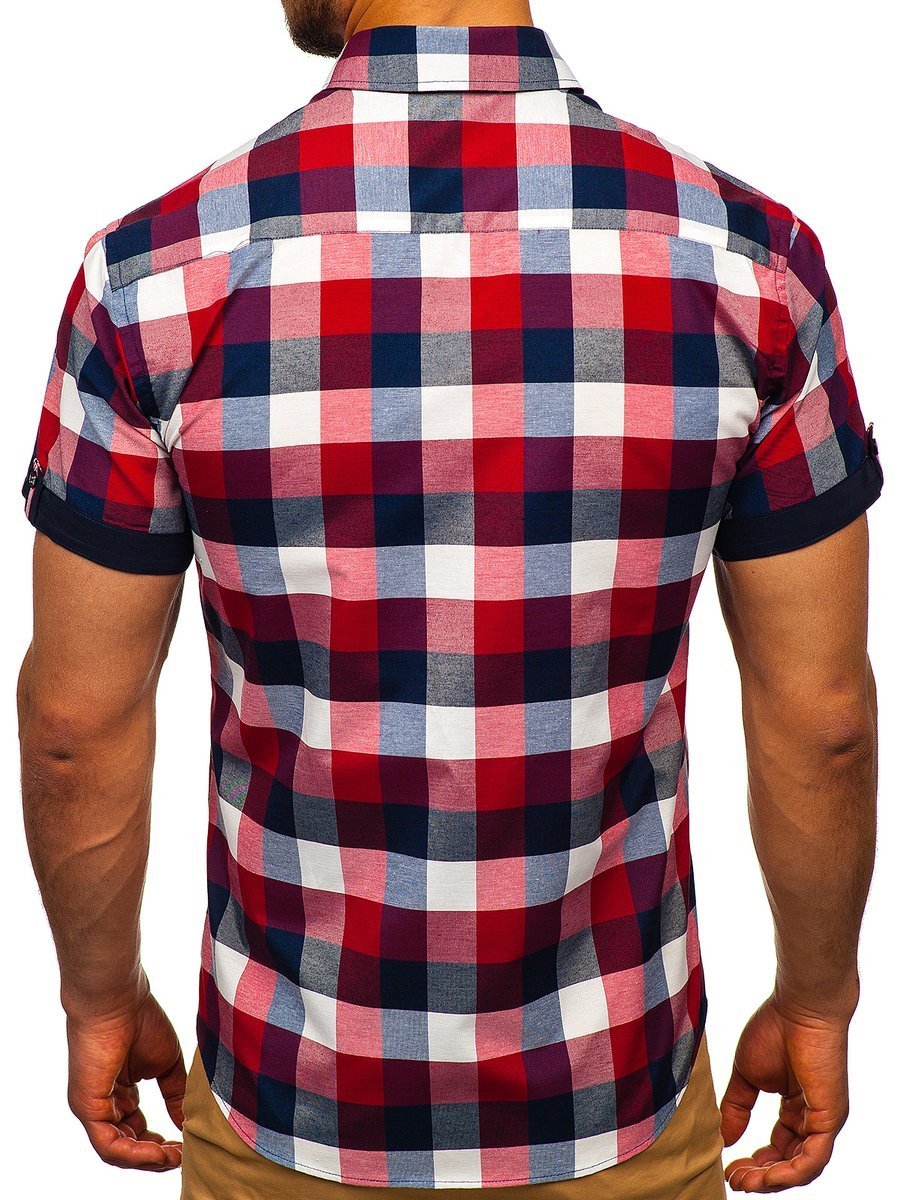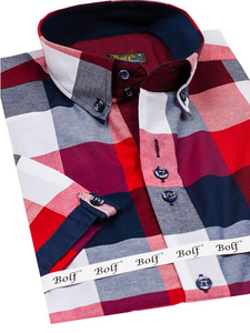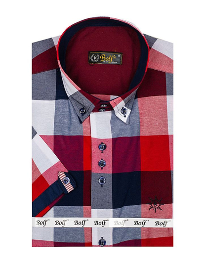 Ризи бордо с къс ръкав slim fit od Bolfв ярка клетка. Те имат модерна яка на бутоните, закръглено дъно, отлично подчертават мъжкия силует. Бордо карирана риза изглежда блестящо в дрехи с дънки, дънкови шорти или панталони чинос.