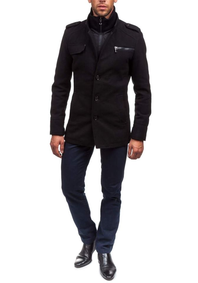 Едноредните черни мъжки палта от Bolf са фантастична топла дреха за есента и зимата. Подчертават фигурата, имат топла подплата и допълнителна висока яка. Черното зимно палто е удобно и изглежда страхотно. Ползвай го и за елегантни аутфити.