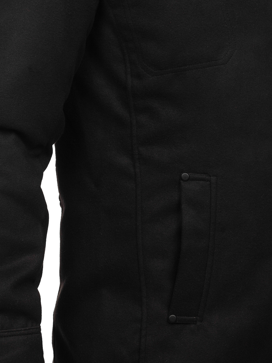 Мъжкото палто в цвят черно Bolf 8856 е елегантно едноредно палто, предлагано допълнително в два цветови варианта - черно и сиво. Продуктът е практичен и може да се счита за вечен. Този продукт е задължителен елемент във всеки мъжки есенно-зимен гардероб. Черното зимно палто фантастично завършва както ежедневната визия, така и по-елегантния вид. То ще бъде идеалното решение за есенните и зимните дни, перфектно предпазва от студ и вятър. Палтото се закопчава с цип и копчета, има две яки: едната е тип ревери, а втората е висока, която може да се закопчава под самият врат. Палтото разполага и с допълнителен джоб с цип на гърдите. Освен това продуктът разполага с четири практични външни джоба и един вътрешен джоб.