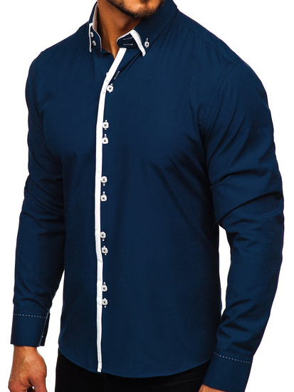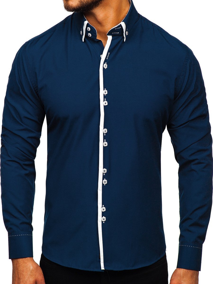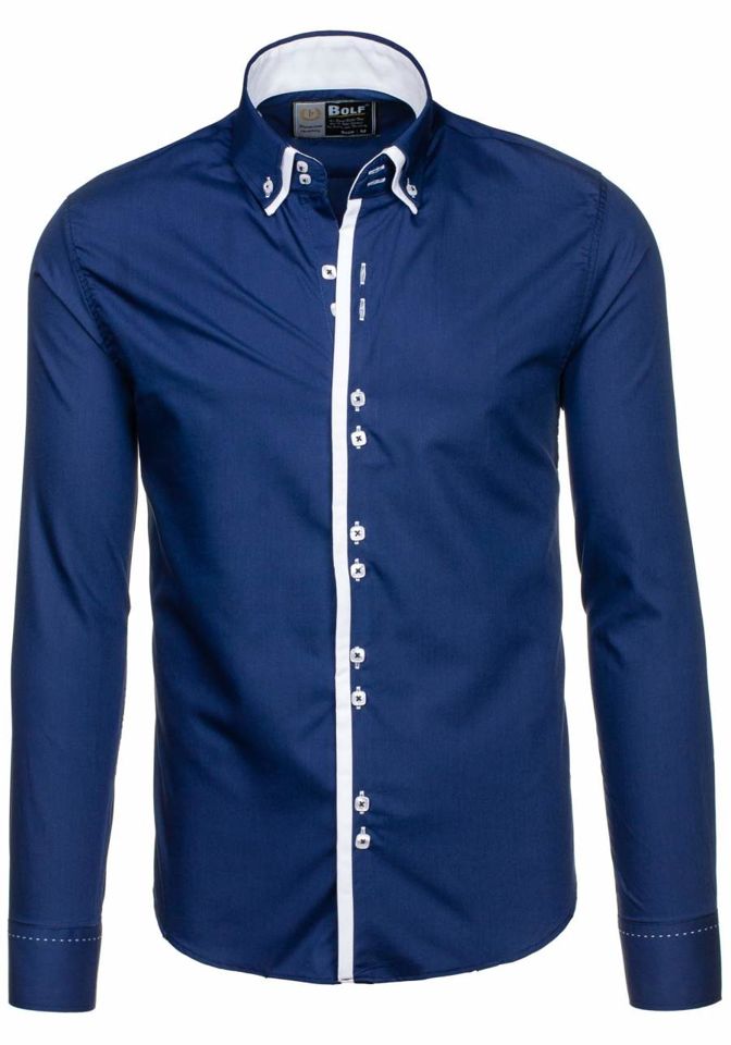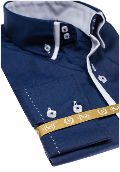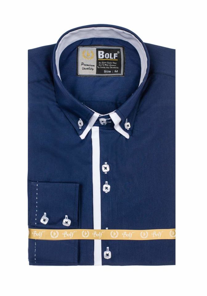 Отзиви и мнения на потребители за Мъжка риза с дълъг ръкав тъмносиня Bolf 1721-1