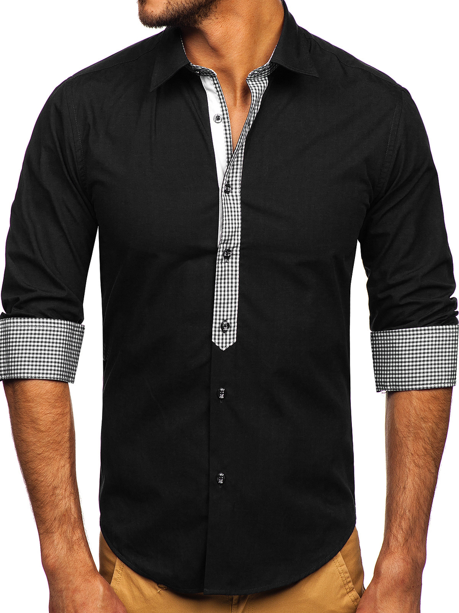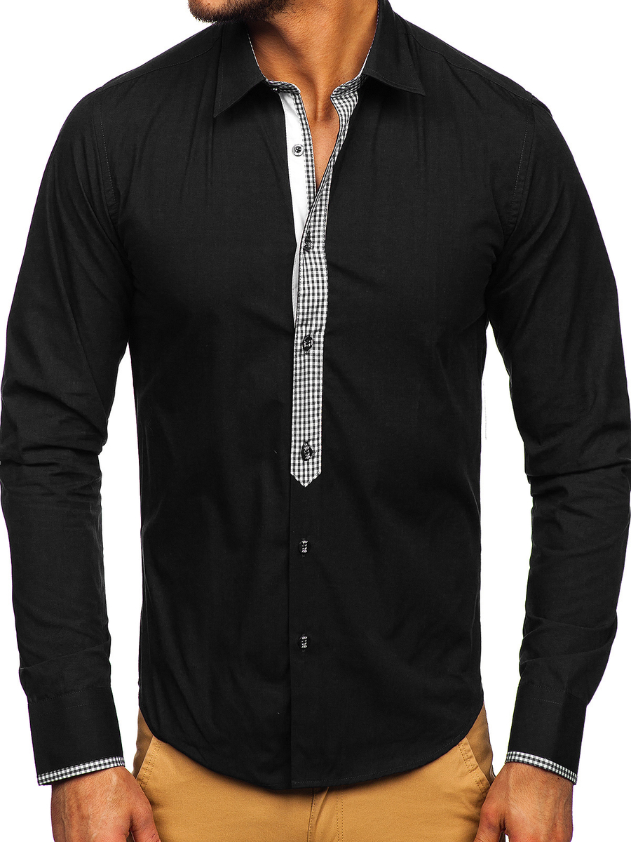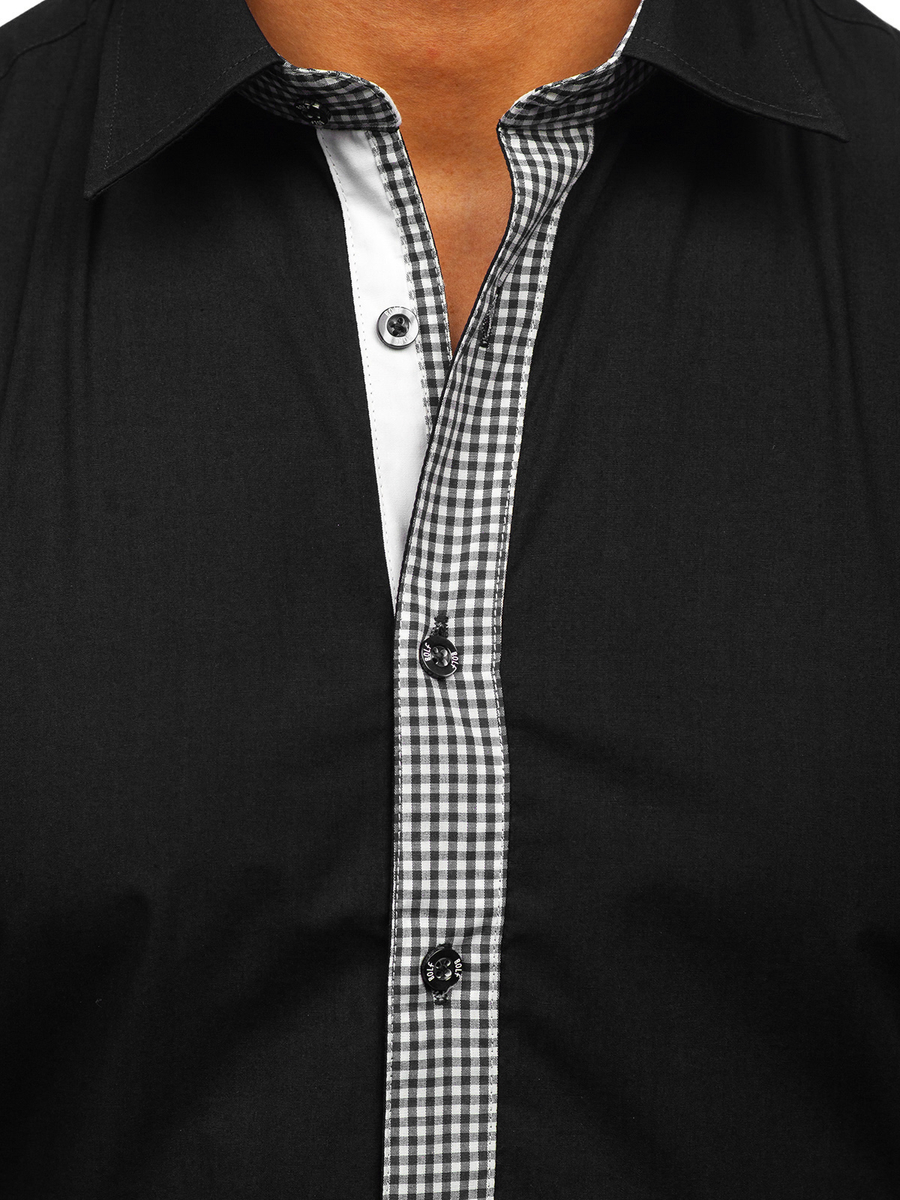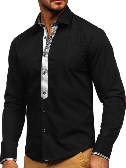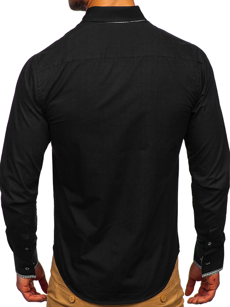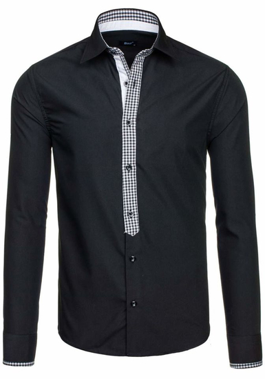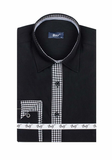Мъжка елегантна риза с дълъг ръкав черна Bolf 6873