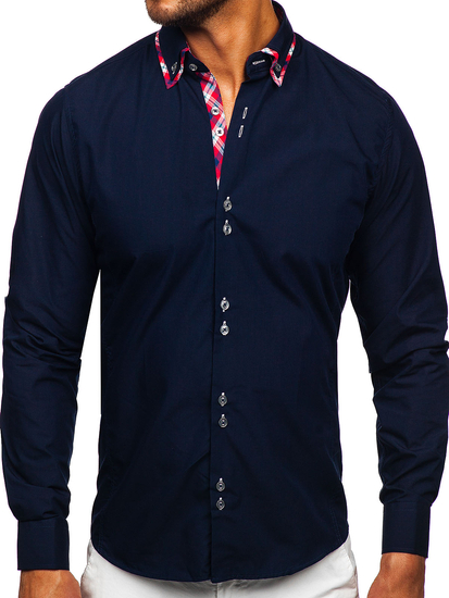 Отзиви и мнения на потребители за Мъжка елегантна риза с дълъг ръкав тъмносиня Bolf 4704
