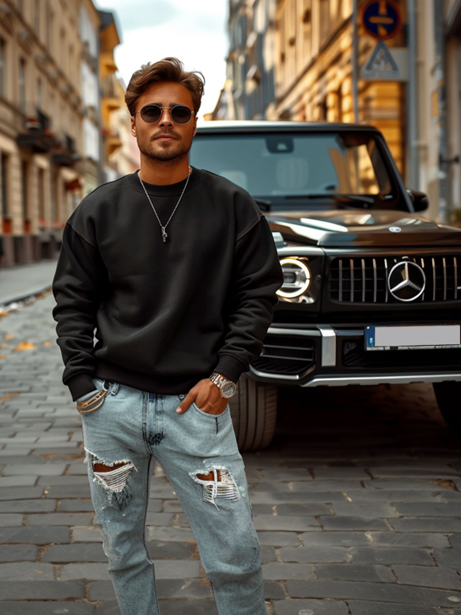 Мъжки суитшърт без качулка черен Bolf BO-01