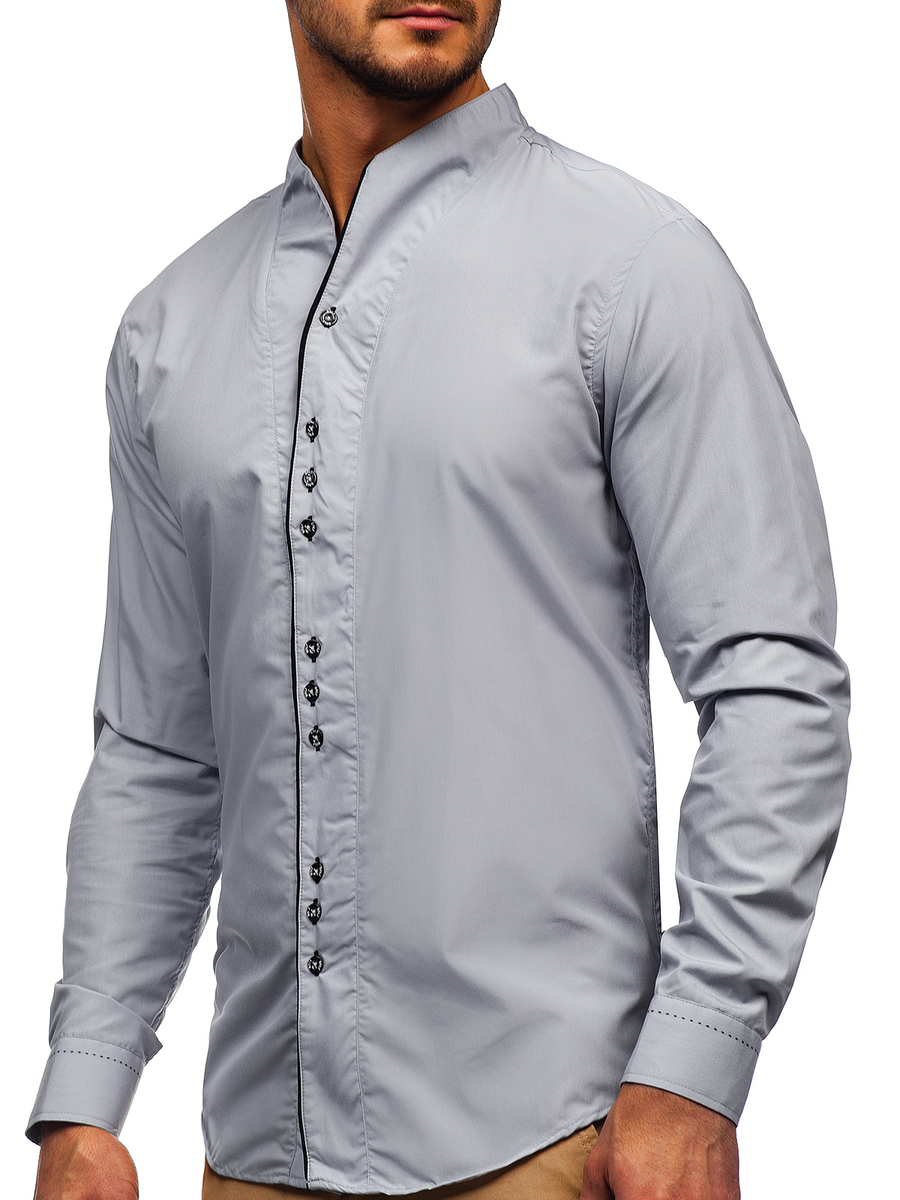 Отзиви и мнения на потребители за Мъжка риза с дълъг ръкав сива Bolf 5720