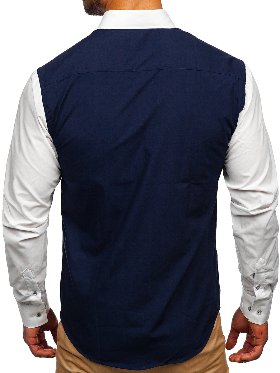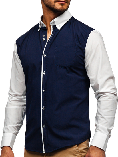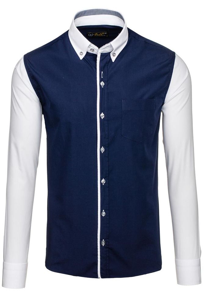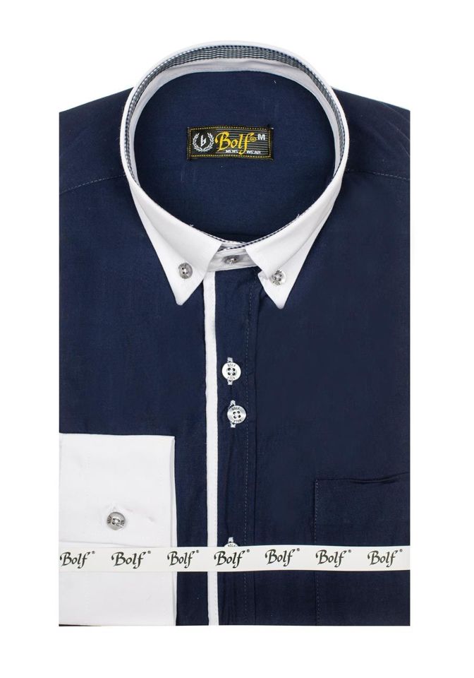 Отзиви и мнения на потребители за Мъжка елегантна риза с дълъг ръкав тъмносиня Bolf 6919