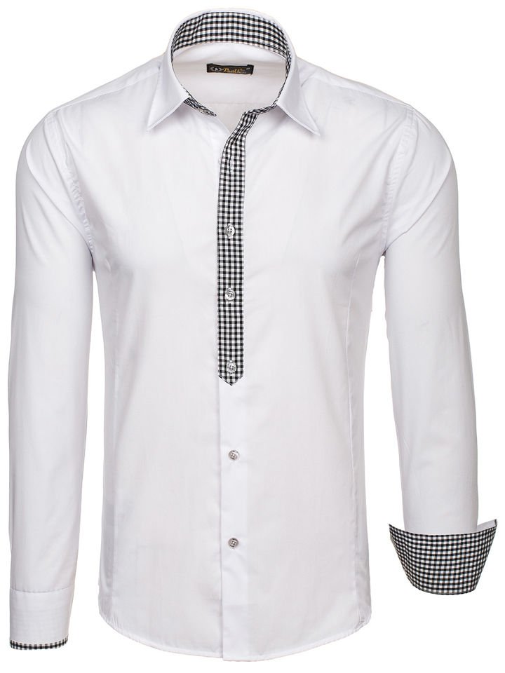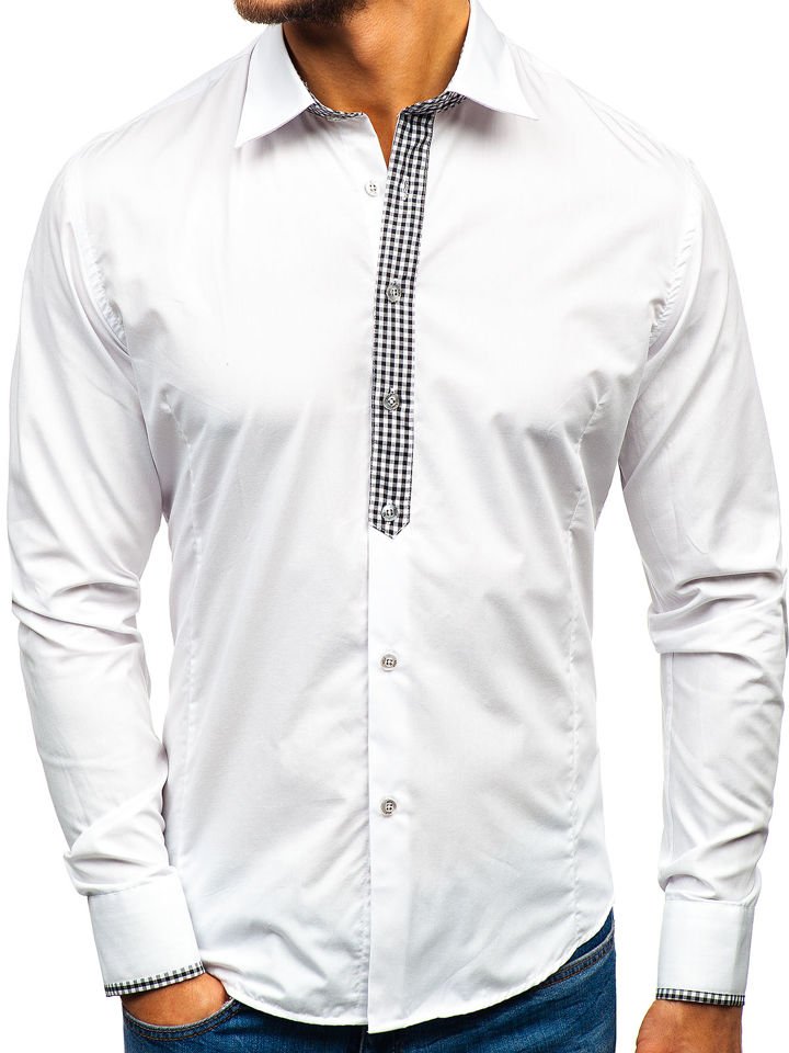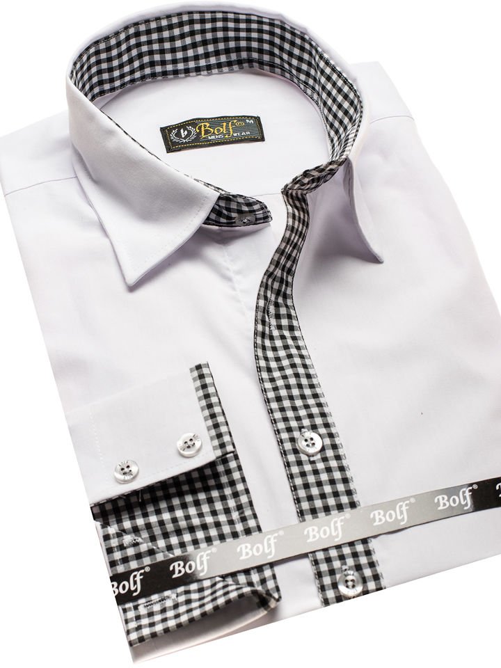 Мъжка елегантна риза с дълъг ръкав бяла Bolf 0939