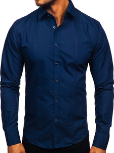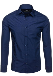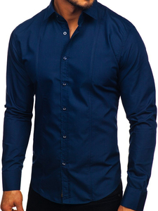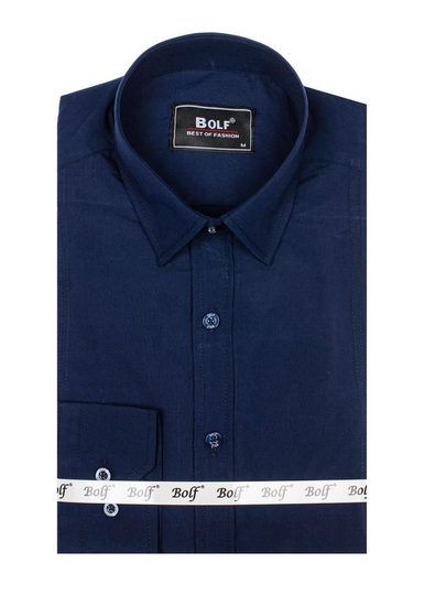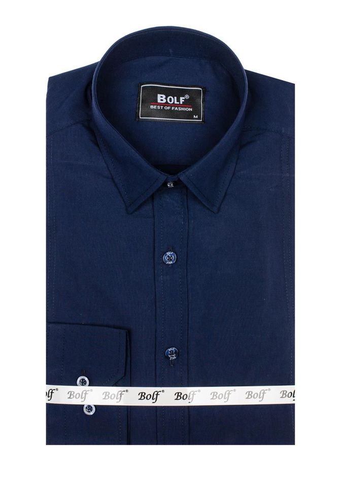 Тъмносиня мъжка елегантна риза с дълъг ръкав Bolf 6944