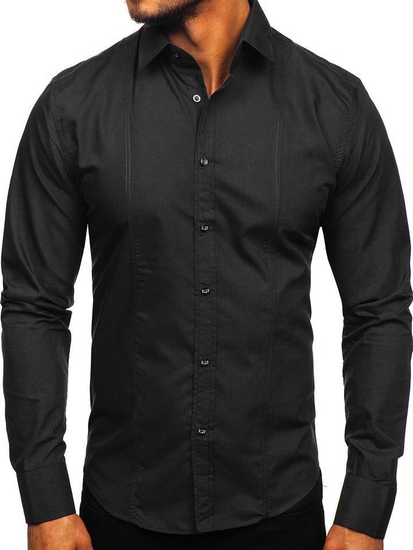 Мъжка елегантна риза с дълъг ръкав черна Bolf 6944