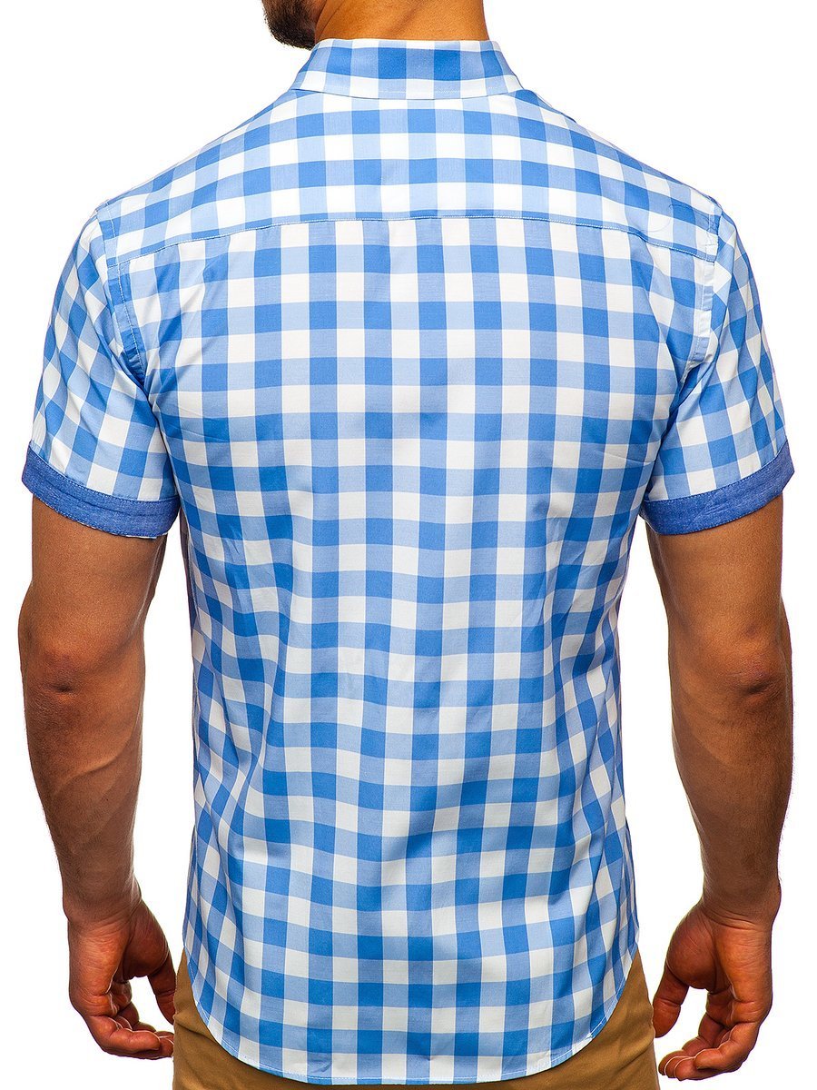 Отзиви и мнения на потребители за Мъжка карирана риза с къс ръкав синя Bolf 6522