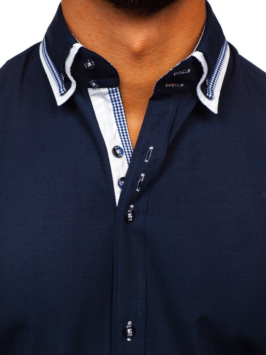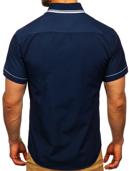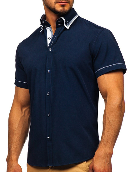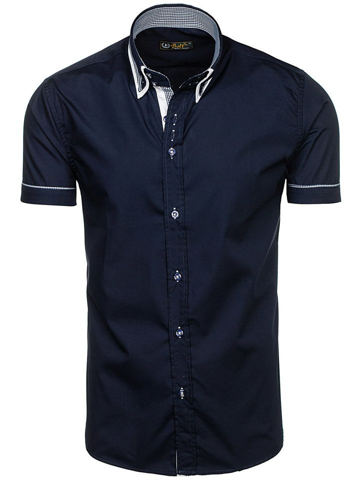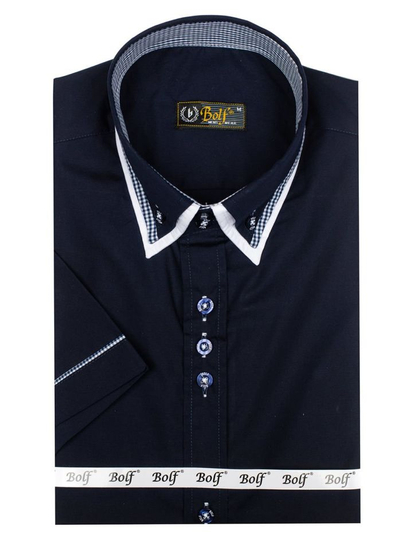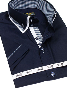 Отзиви и мнения на потребители за Мъжка риза с къс ръкав тъмносиня Bolf 3520