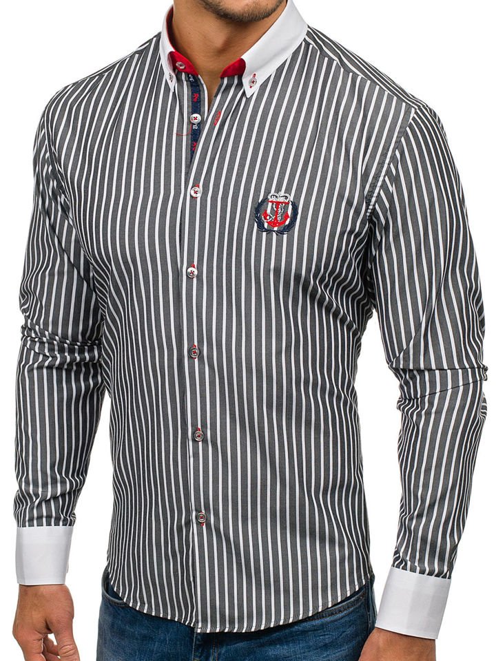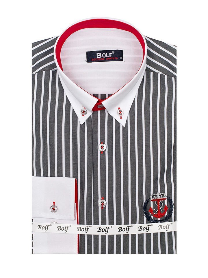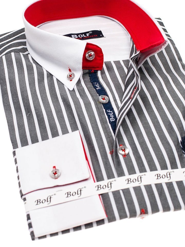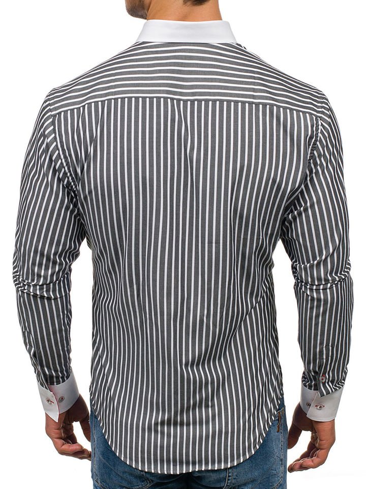 Отзиви и мнения на потребители за Мъжка риза на райета с дълъг ръкав графитена Bolf 1771