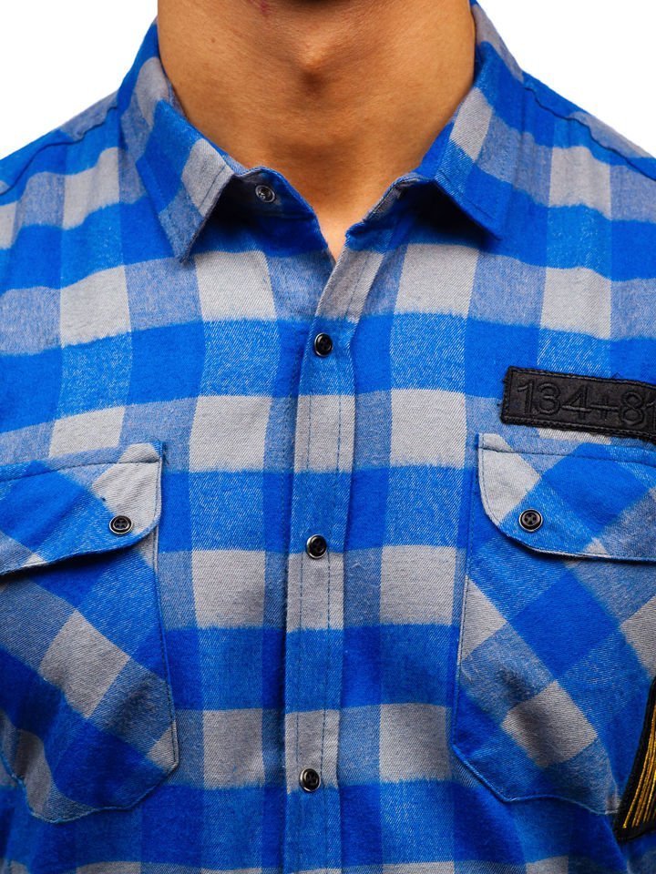 Отзиви и мнения на потребители за Мъжка бархетна риза с дълъг ръкав синьо-сива Bolf 2503