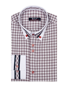 Отзиви и мнения на потребители за Мъжка карирана риза с дълъг ръкав бордо Bolf 8808