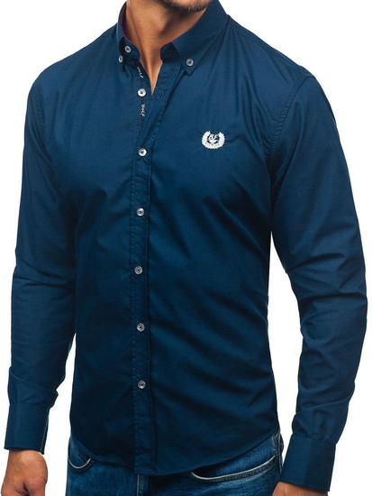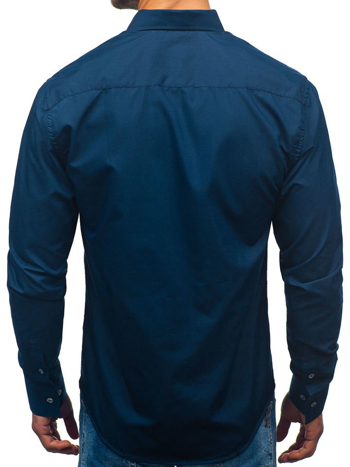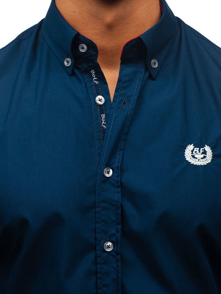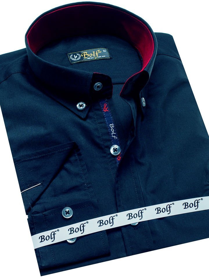 Отзиви и мнения на потребители за Мъжка елегантна риза с дълъг ръкав тъмносиня Bolf 2772
