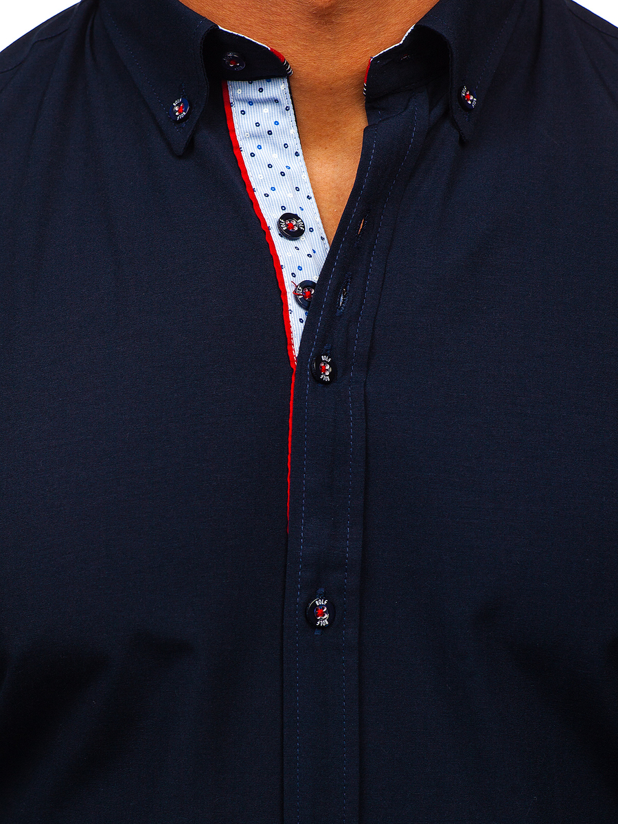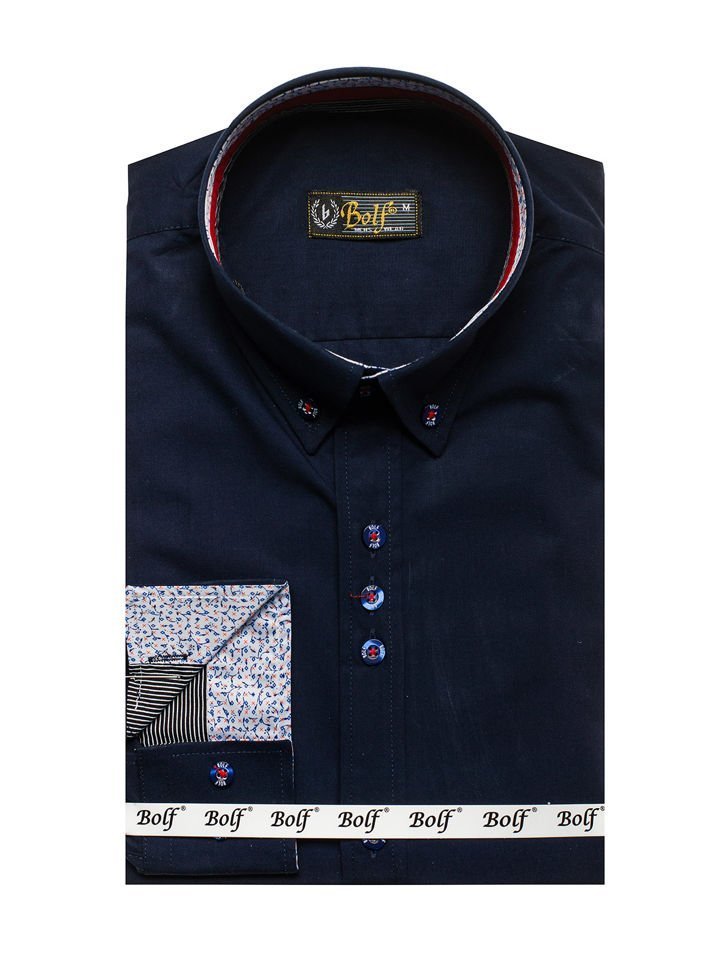 Отзиви и мнения на потребители за Мъжка елегантна риза с дълъг ръкав тъмносиня Bolf 8839