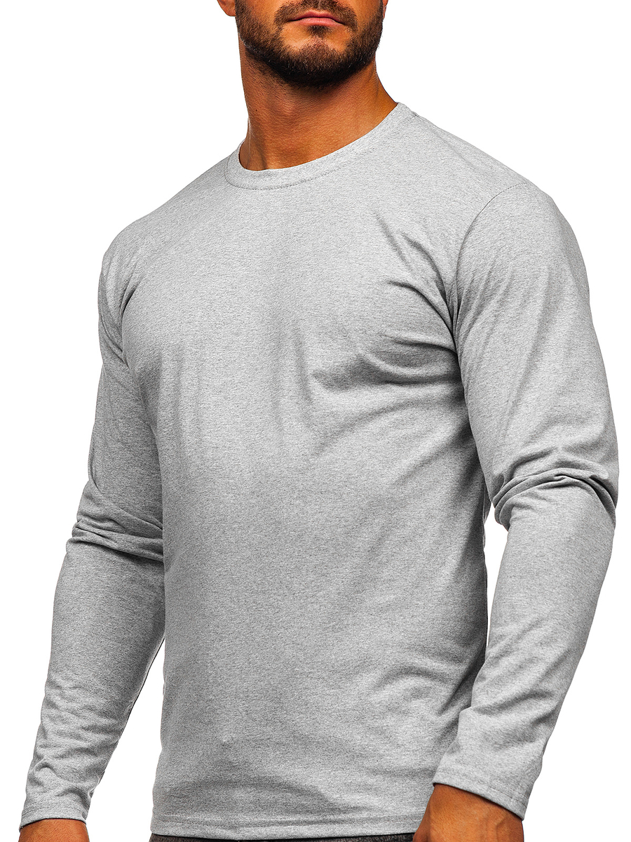 Отзиви и мнения на потребители за Мъжка тениска с дълъг ръкав без принт сива Bolf 1209