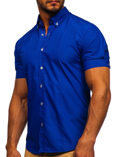 Отзиви и мнения на потребители за Мъжка елегантна риза с къс ръкав метличиносиня Bolf 5535