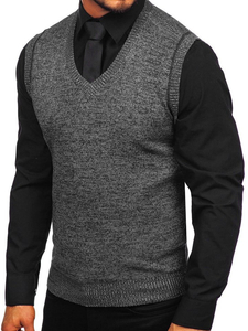 Стилен, черен, мъжки пуловер без ръкави от Bolf. Втален, моден и удобен. Черният пуловер с триъгълно деколте изглежда фантастично с риза. През студените дни го носи в дует със сако.