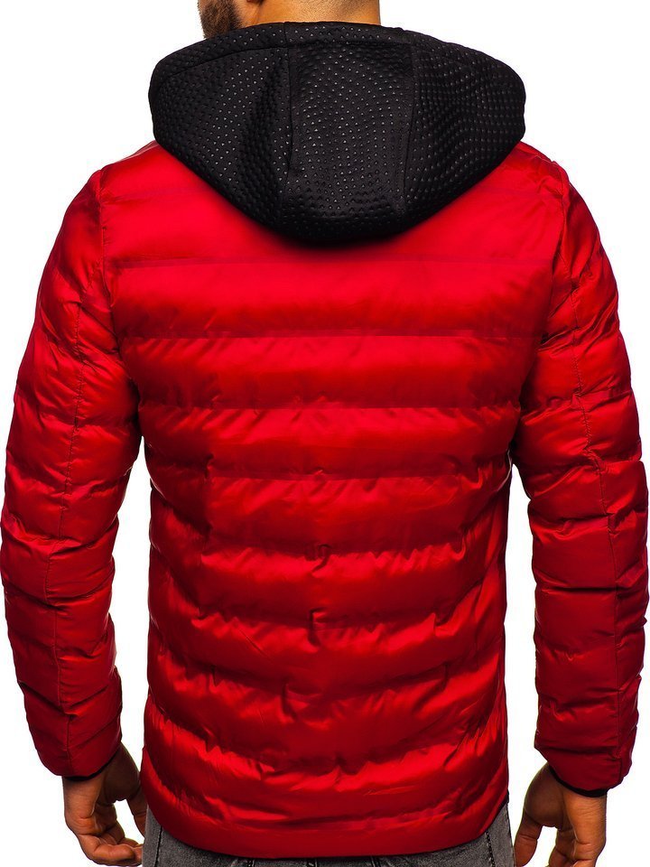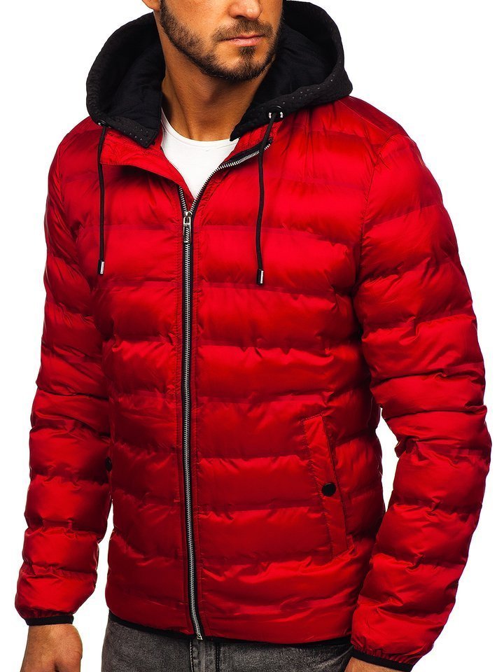 Мъжкото преходно яке Bolf 5332 в червен цвят е изключително леко. Удобно закопчаване с цип, подходящо е за спортни и ежедневни аутфити. Има сваляща се текстилна качулка, благодарение на което сами решаваме дали ни е нужна или не. Когато свалим качулката, остава яке с вдигната яка. Якето има два външни джоба с тик-так копчета. Ръкавите са завършени с щрик.