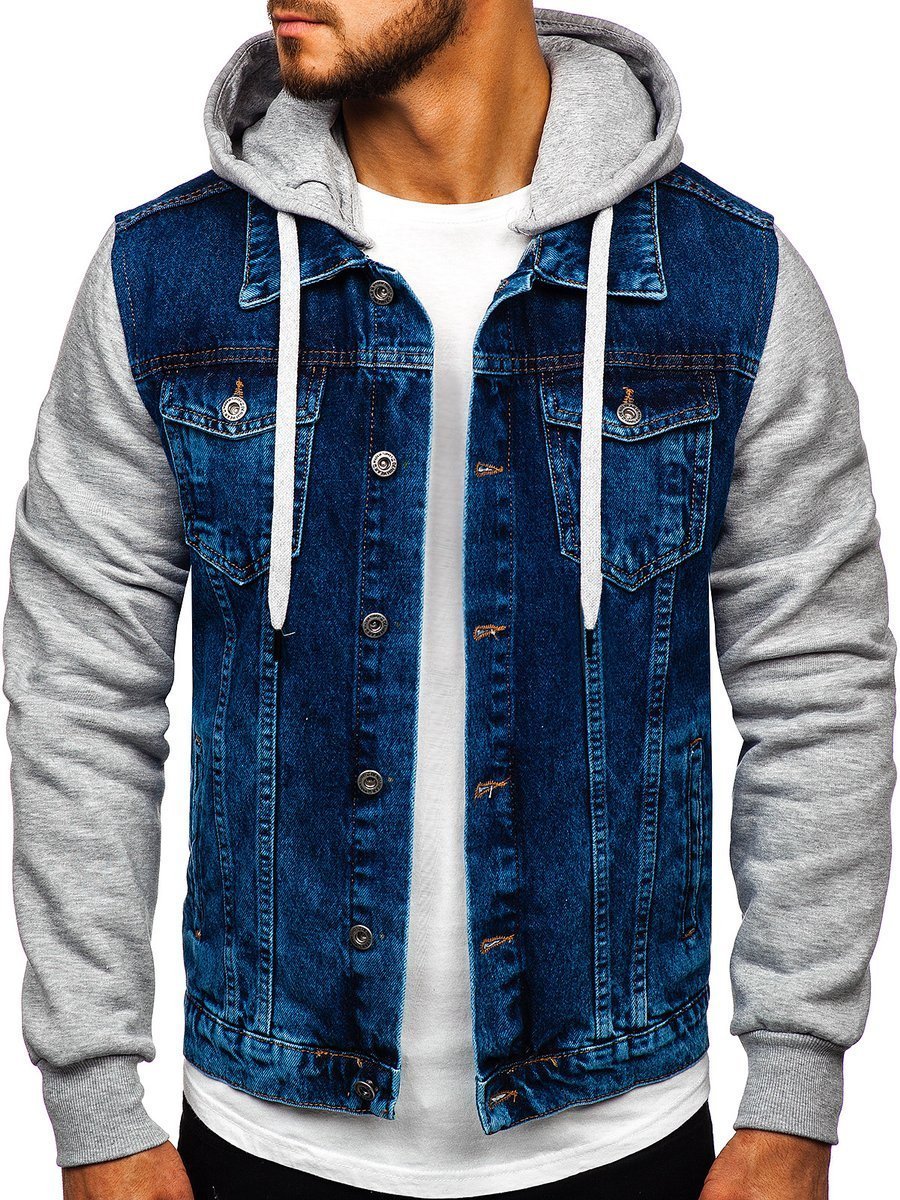 Отзиви и мнения на потребители за Мъжко дънково яке с качулка тъемносиньо Bolf 211902