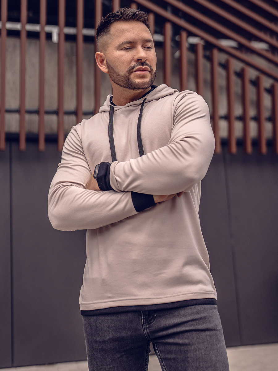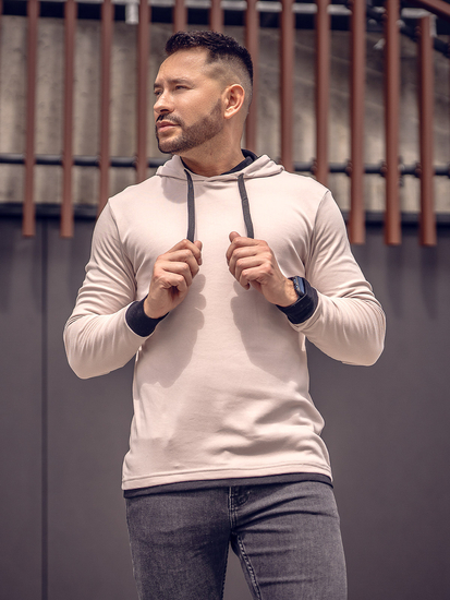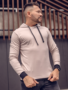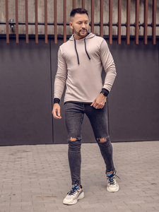 Бежовият мъжки суичър с качулка Bolf 145380 е универсален продукт, който ще изглежда страхотно в летни и зимни стилизации. Предлага се в няколко различни цветови варианта, което дава широки възможности при създаване на ежедневни стилизации. Суичърът в модерен цвят е в основата на добрия ourfit. Суичърът се облича през главата и има регулируема качулка, която ще ви предпази от студ и вятър. Долният подгъв и ръкавите са завършени с контрастираща веревна лента. Продукт от този тип е задължителен за любителите на спортния стил. Осигурява комфорт по време на разходка, джогинг или тренировка. Продуктът е изработен от 100% памук, което го прави приятен на допир и изключително удобен. Ще създадете интересна стилизация с дънки или джогъри. За по-хладните вечери също ще е страхотен в комбинация с яке тип бомбър.
