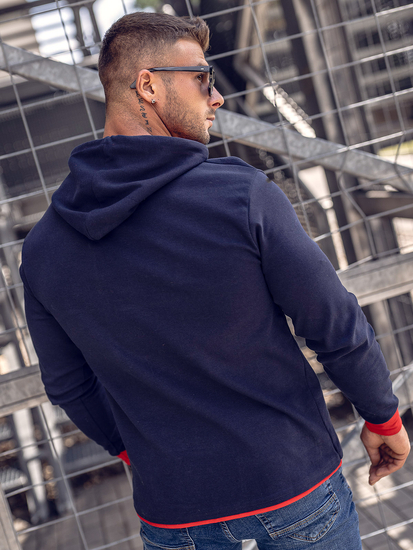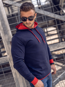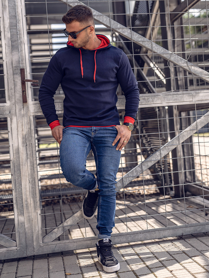 Тъмносиният мъжки суичър с качулка Bolf 145380 е универсален продукт, който ще изглежда страхотно в летни и зимни стилизации. Предлага се в няколко различни цветови варианта, което дава широки възможности при създаване на ежедневни стилизации. Суичърът в модерен цвят е в основата на добрия ourfit. Суичърът се облича през главата и има регулируема качулка, която ще ви предпази от студ и вятър. Долният подгъв и ръкавите са завършени с контрастираща веревна лента. Продукт от този тип е задължителен за любителите на спортния стил. Осигурява комфорт по време на разходка, джогинг или тренировка. Продуктът е изработен от 100% памук, което го прави приятен на допир и изключително удобен. Ще създадете интересна стилизация с дънки или джогъри. За по-хладните вечери също ще е страхотен в комбинация с яке тип бомбър.